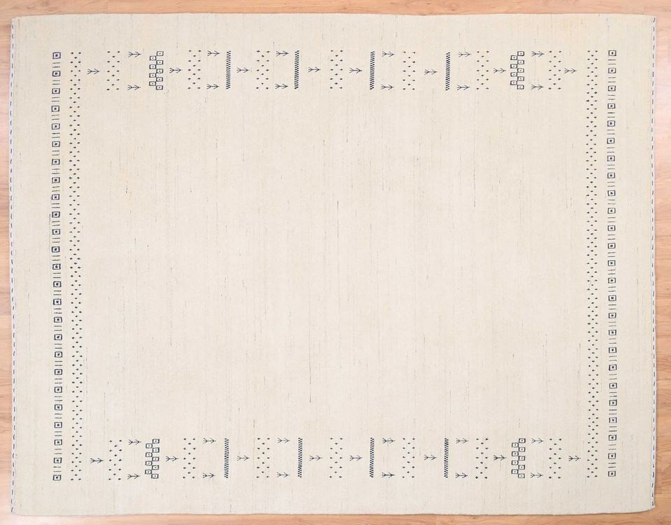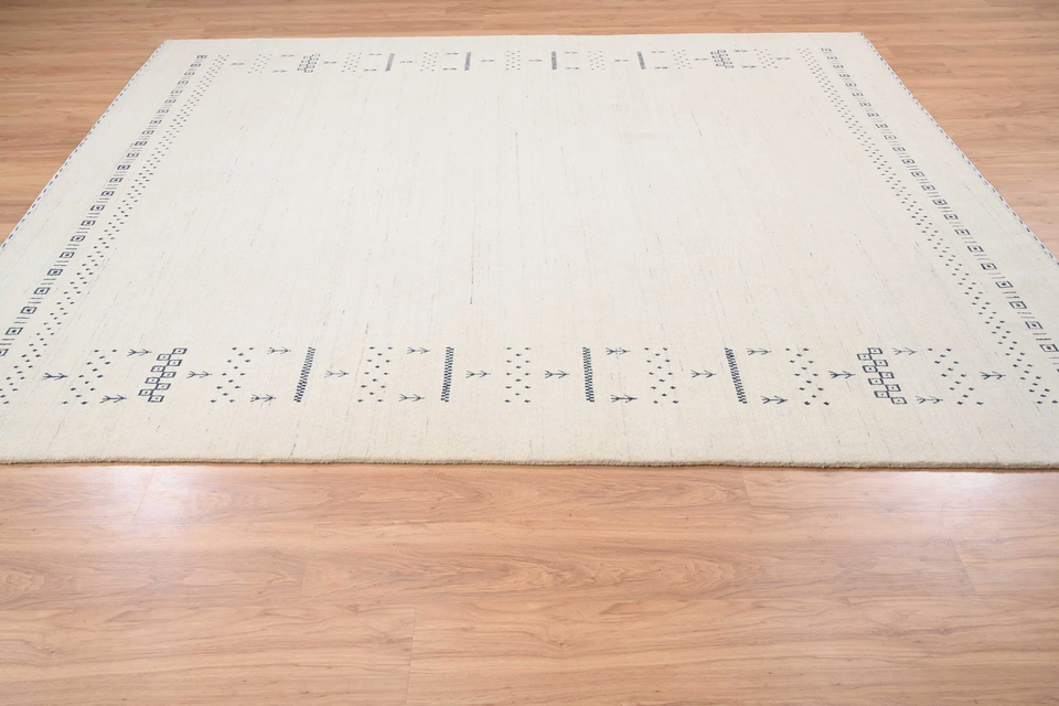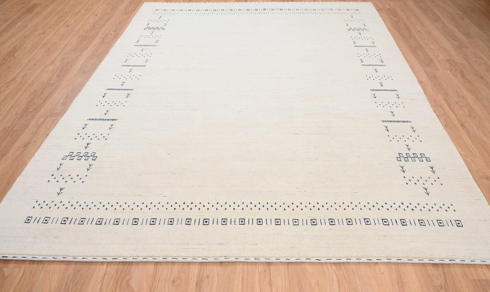 Tapis Gabbeh en laine tissé à la main, motif tribal crème avec accents bleus, taille personnalisée, tapis de sol blanc, décoration intérieure confortable