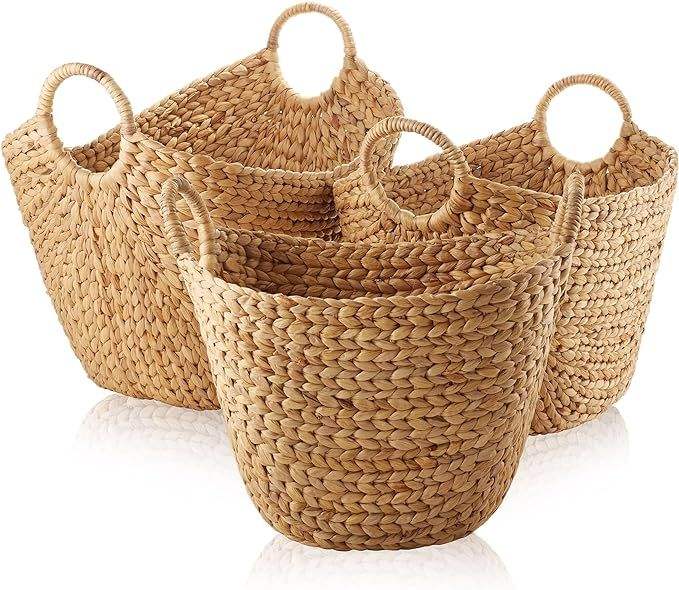 Handwoven natural rattan basket with rustic appeal suitable for farmhouse kitchen bathroom or bedroom home decor