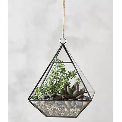 Terrarium en verre artisanal moderne et créatif pour balcon suspendu, vase à fleurs en verre avec cadre en fer fini or pour décorations de table