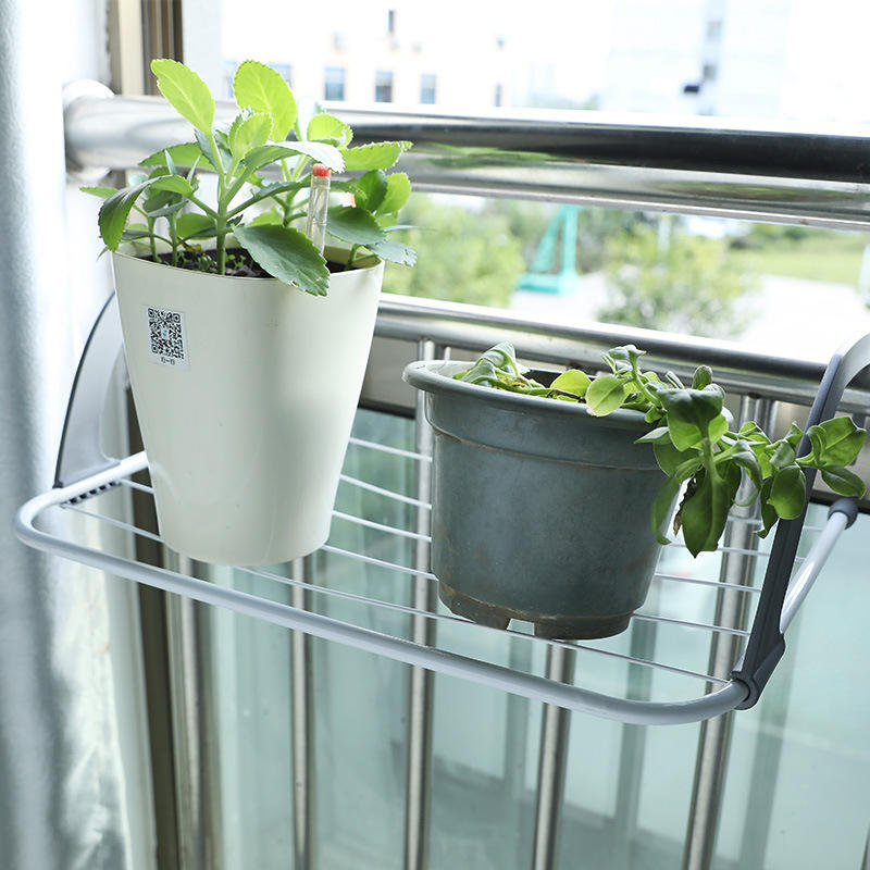 Étagère suspendue pliable pour balcon, grise, rectangulaire, type push-pull, pour rangement de pots de plantes, utilisation sur rebord de fenêtre