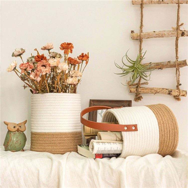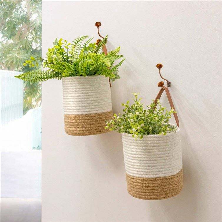 Panier à linge sale suspendu Pot de fleurs Net Cache jardinières décors muraux en bambou grands paniers en rotin avec poignée