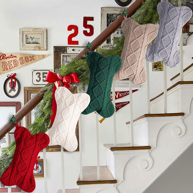 Chien suspendu bas de noël forme d'os tricot rouge vert blanc kaki gris bas de noël pour enfants cadeaux de vacances