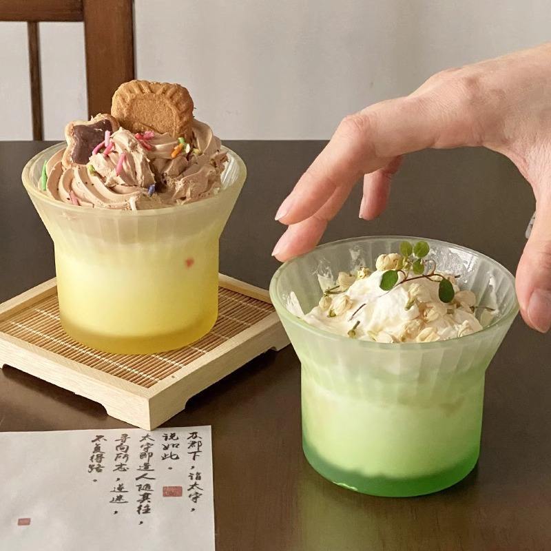 Tasse à café en verre borosilicate de 220 ml avec anse, motif vertical dégradé créatif et avancé, forme irrégulière