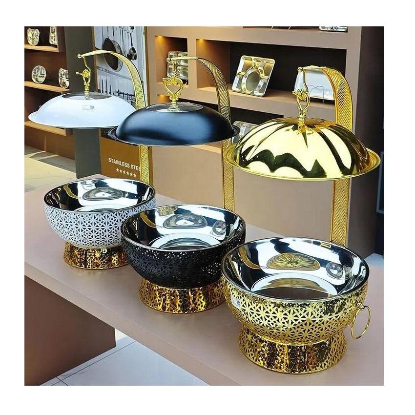 Plat de service de luxe en acier inoxydable avec couvercle articulé ou à ouverture normale, chauffe-plat professionnel pour buffet