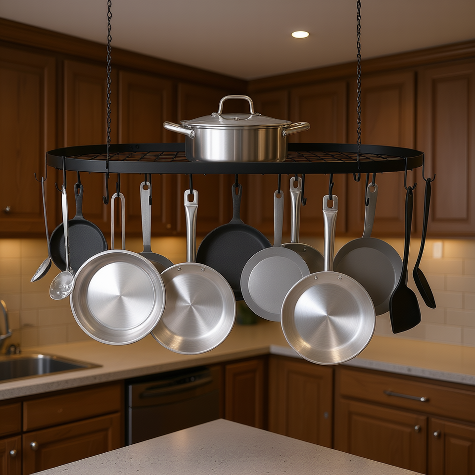 Support de rangement suspendu pour casseroles, 36 pouces, 20 crochets, fixation au plafond, rangement de cuisine pour ustensiles de cuisson