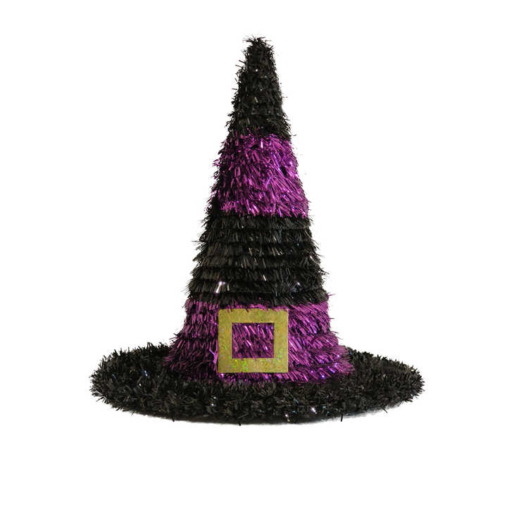 Nom du produit:Chapeau de sorcière violet et noir suspendu avec boucle dorée