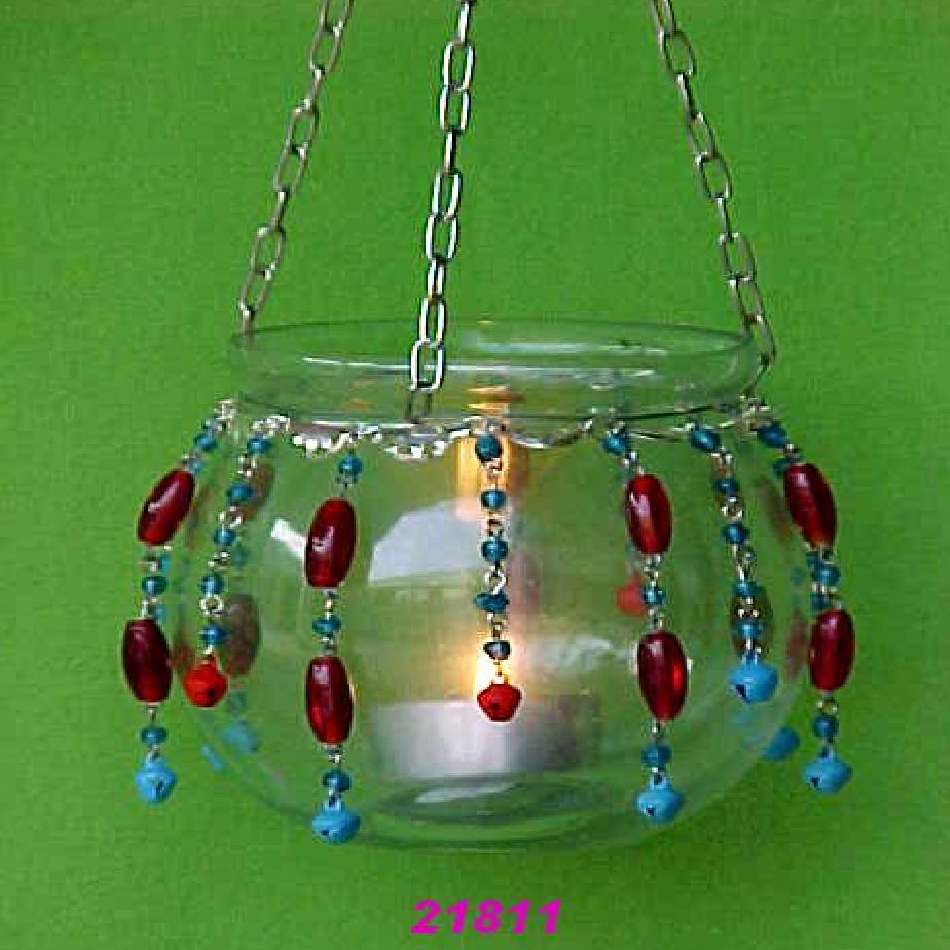 Lanterne photophore suspendue pour la décoration de la maison Verre transparent et perles Lanterne photophore suspendue pour la décoration de la maison