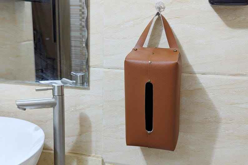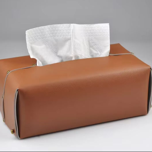 Support de boîte à mouchoirs suspendu avec sangles détachables Couverture de boîte à mouchoirs rectangulaire en cuir décoratif LBTC-0048