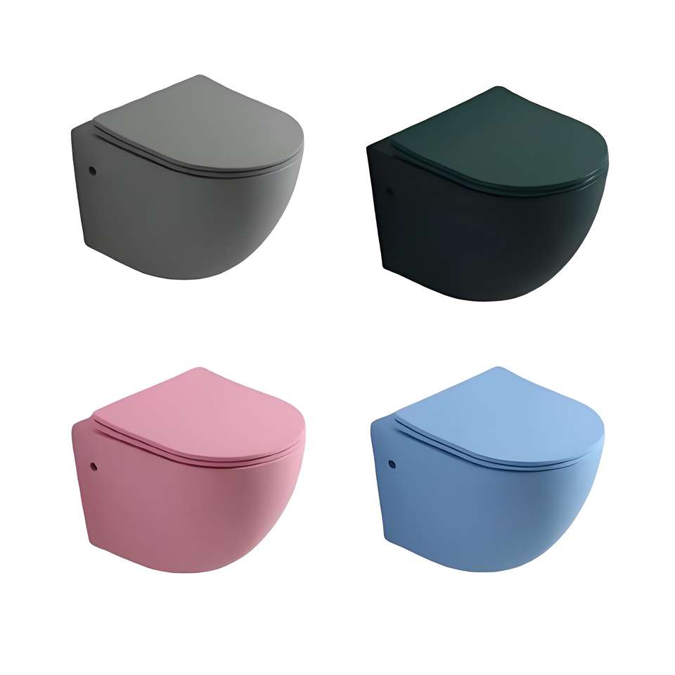 Style:Toilette suspendue sans rebord, de forme ronde et peu encombrante.