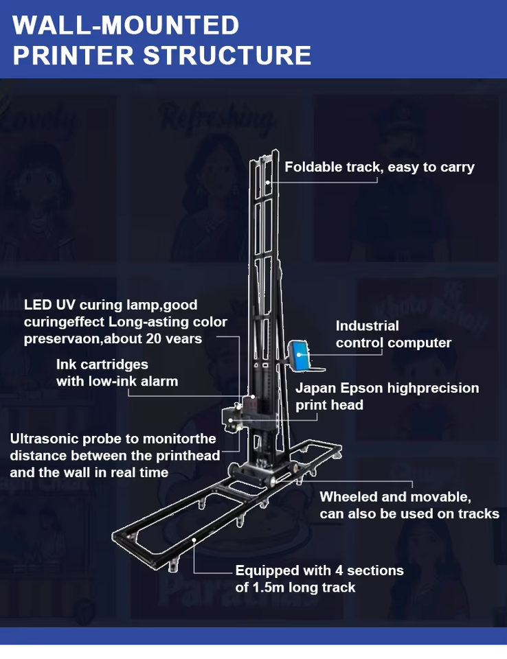 Imprimante murale UV Hanjie d'entrée de gamme avec base en acier intégrée, haute précision, conception modulaire et mouvement libre