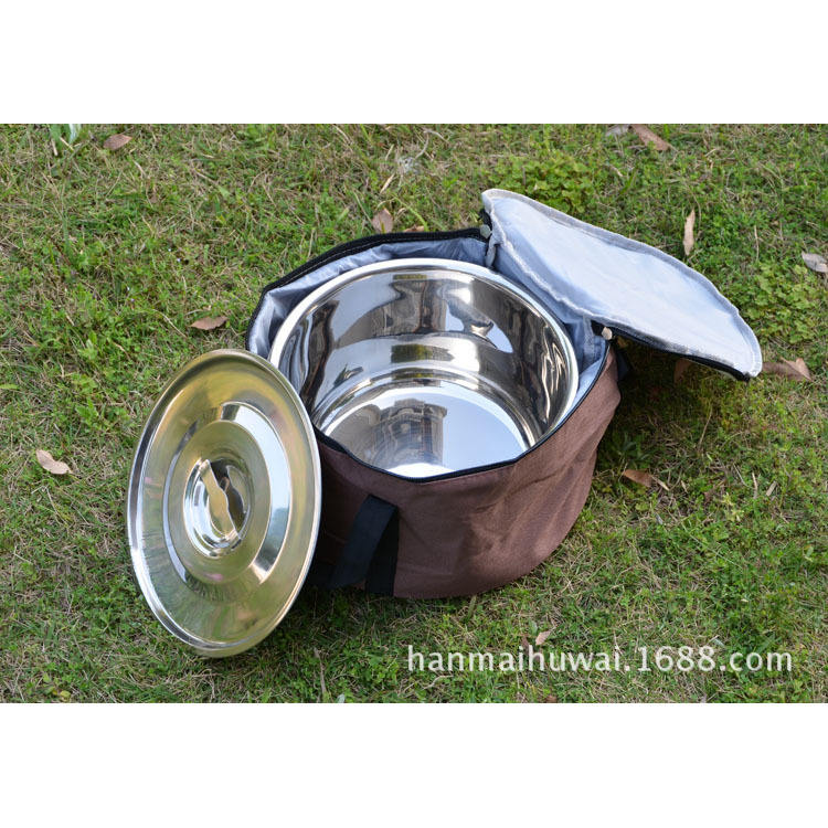 Ensemble de cuisine en acier inoxydable Hanmai pour l'extérieur, 4 pièces avec couvercle, ensemble de casseroles portables, finition polie miroir argentée