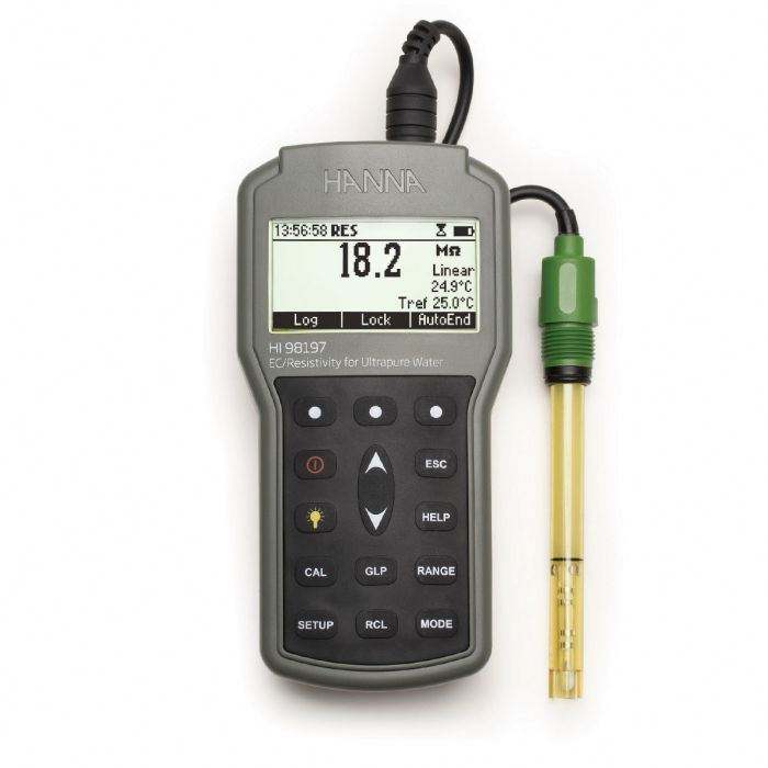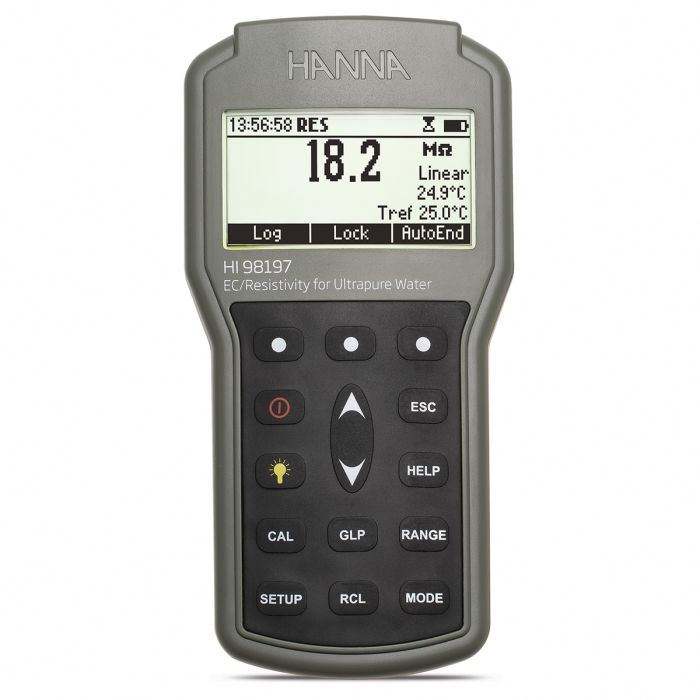 Kit de mesure portable Hanna Instruments HI98197 pour l'eau ultra pure, résistivité, salinité, température, EC, TDS, étanche