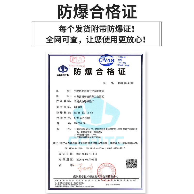 Lampe de poche anti-explosion Hannah 4.2V 12800mAh rechargeable pour l'extérieur, lampe minière avec batterie de secours d'urgence