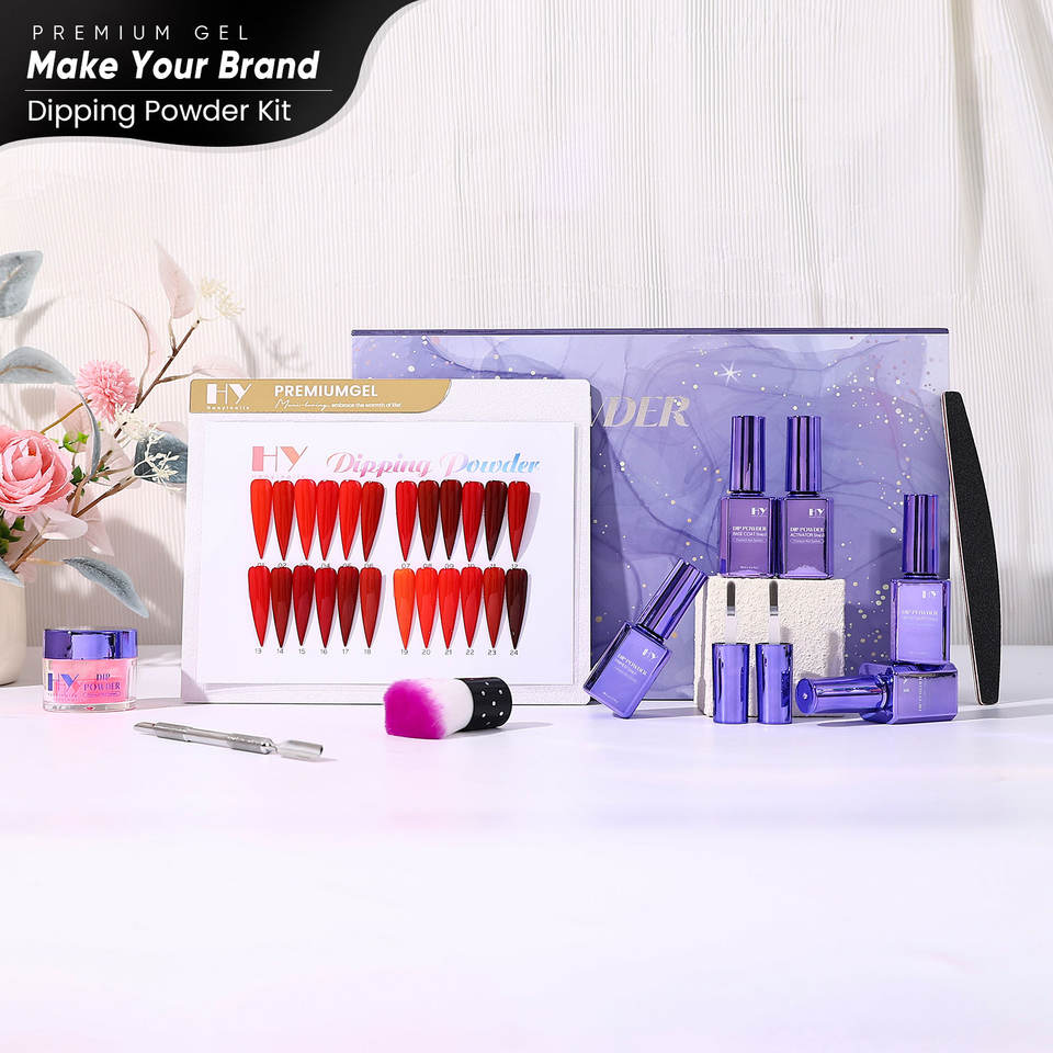 Kit de poudre à tremper pour ongles Hanyinails Premium, personnalisable OEM, 14 pièces, 4 couleurs, séchage à l'air, sans lampe UV