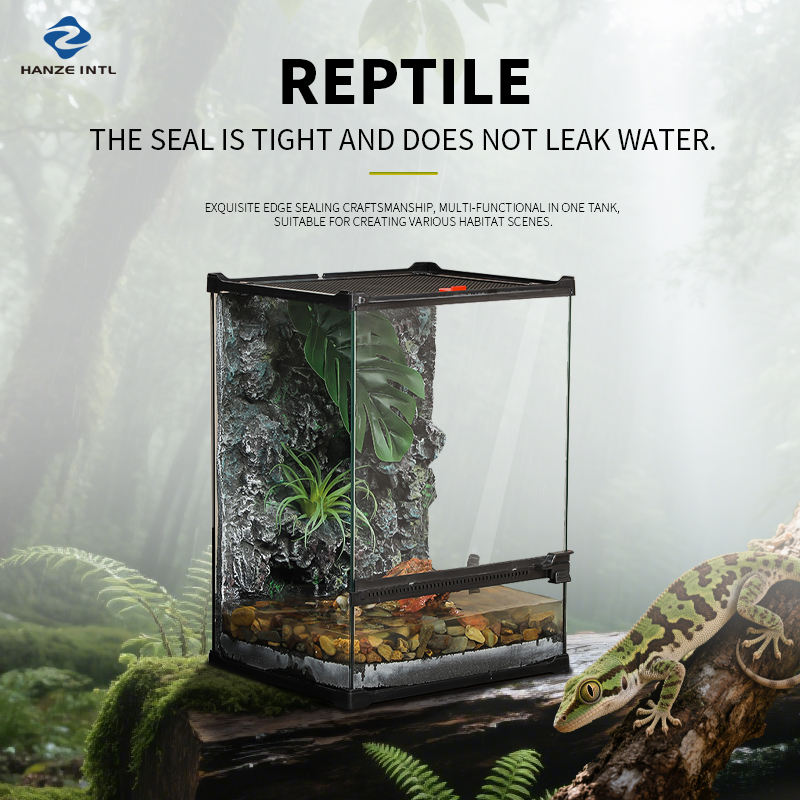 Terrarium en verre Hanze, moderne, classique, simple, écologique, boîte de présentation, bouton-pression, dessus en maille, réservoir de luxe pour reptiles arboricoles