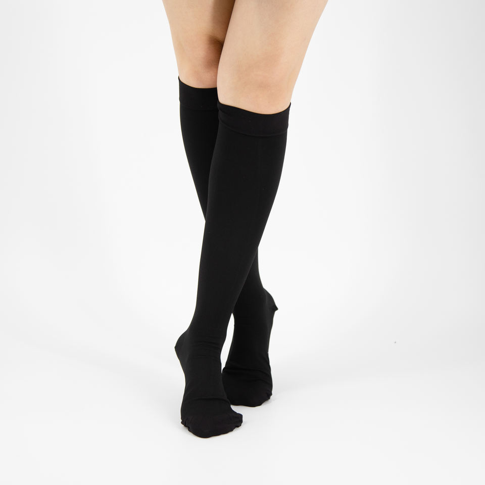 Bas de compression tricotés unis pour femme Haody, classe 1, longueur genou, polyester/coton, décontractés, antibactériens