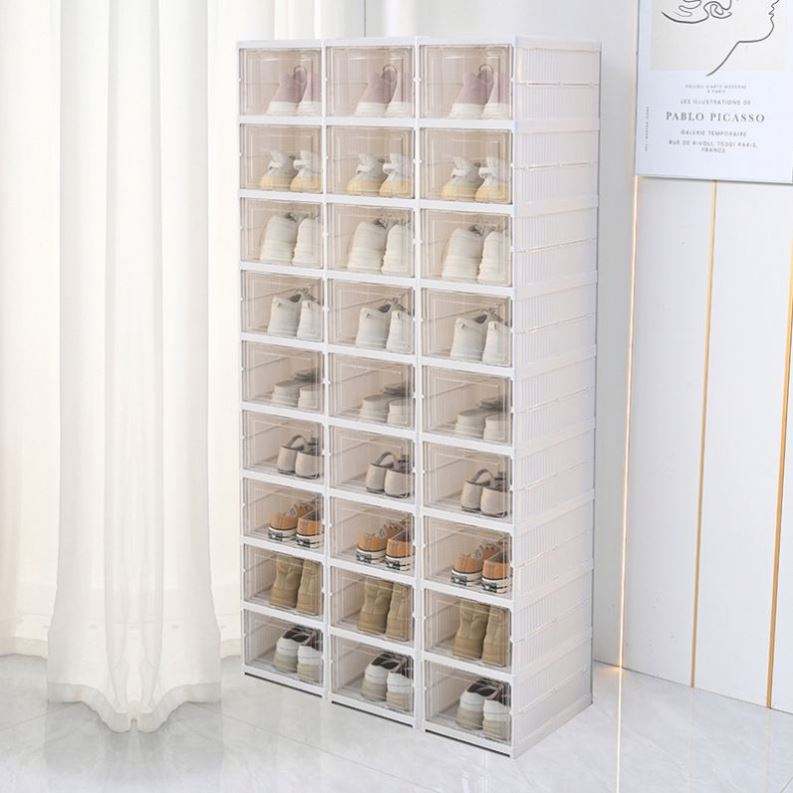 Haogle Nouvelle arrivée Boîte de rangement magnétique pour chaussures Boîte de rangement pliable pour chaussures Conteneur à chaussures avec porte latérale magnétique