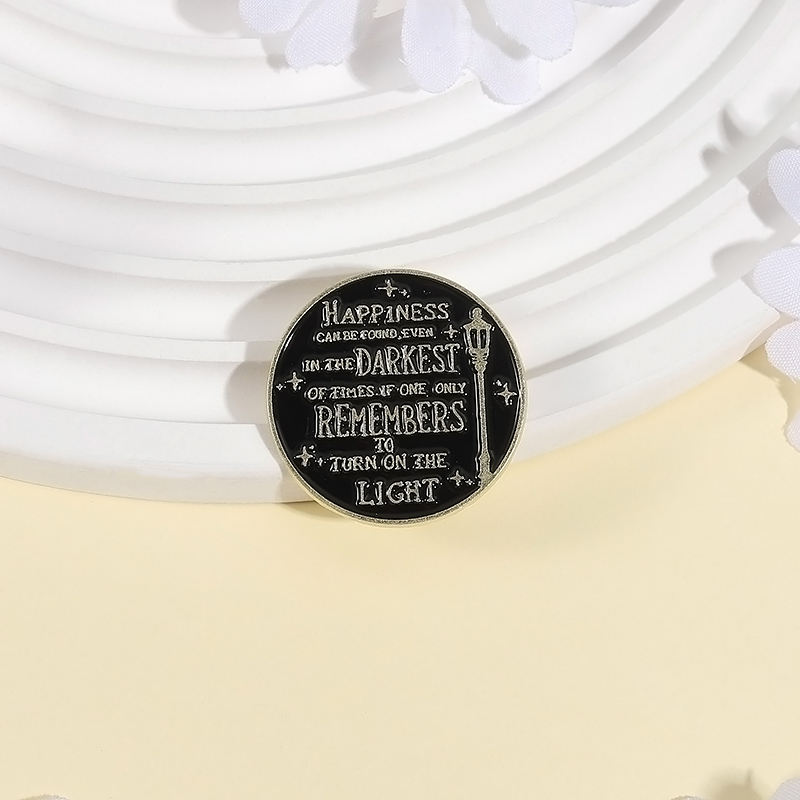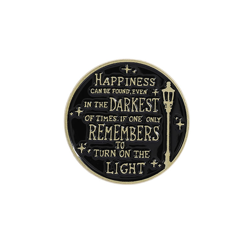 Épingles en émail avec citations positives « Le bonheur peut être trouvé même dans les moments les plus sombres », broche en alliage, badge de revers, bijou, cadeau pour un ami
