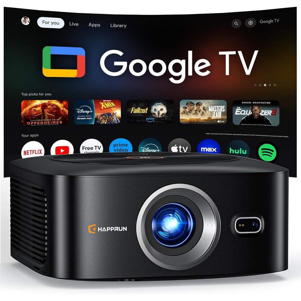 Projecteur intelligent Haprun 1500 lumens ANSI 4K Full HD Android 11 Google TV Home Cinéma avec mise au point automatique pour son Wi-Fi portable