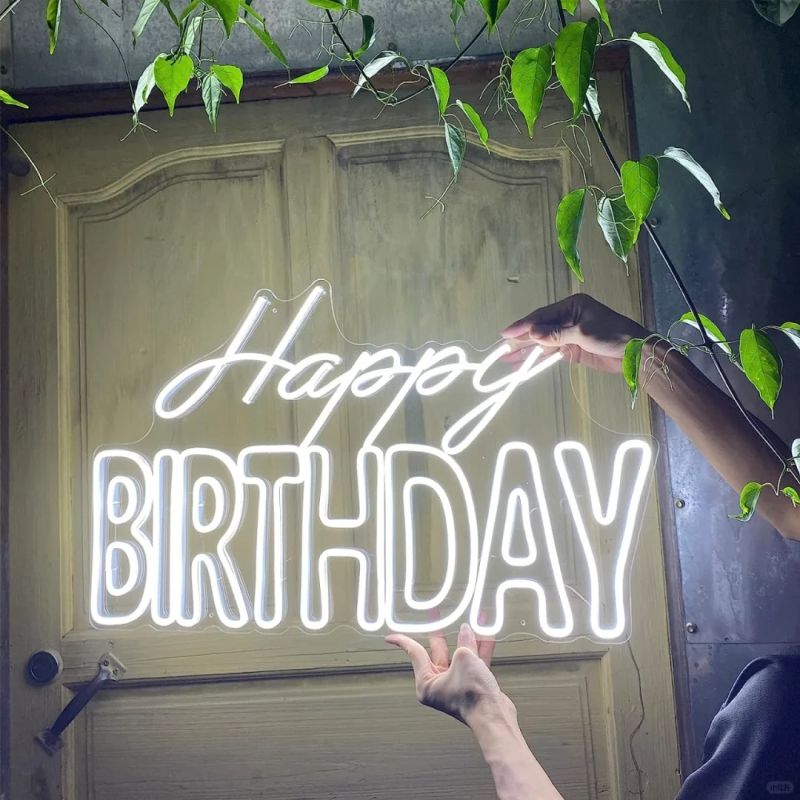Enseigne néon Joyeux Anniversaire en forme de gâteau, personnalisée en acrylique, avec éclairage LED, pour la décoration de la maison, des fêtes d'anniversaire et des salles