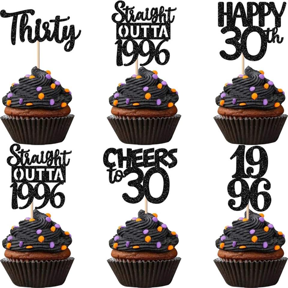 Décorations de gâteau Joyeux Anniversaire pour 30e et 50e Anniversaires et Anniversaires de Mariage - Décorations de Fête avec Textes et Slogans Imprimés Joyeux 30e Anniversaire Straight Outta