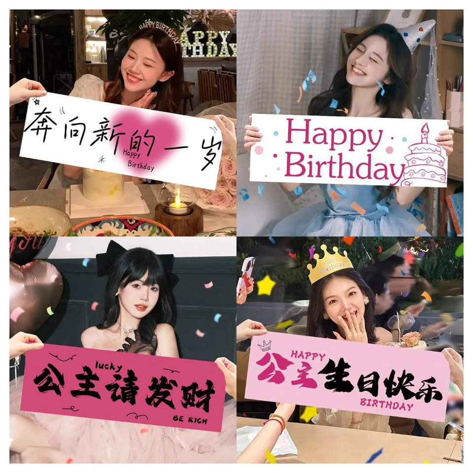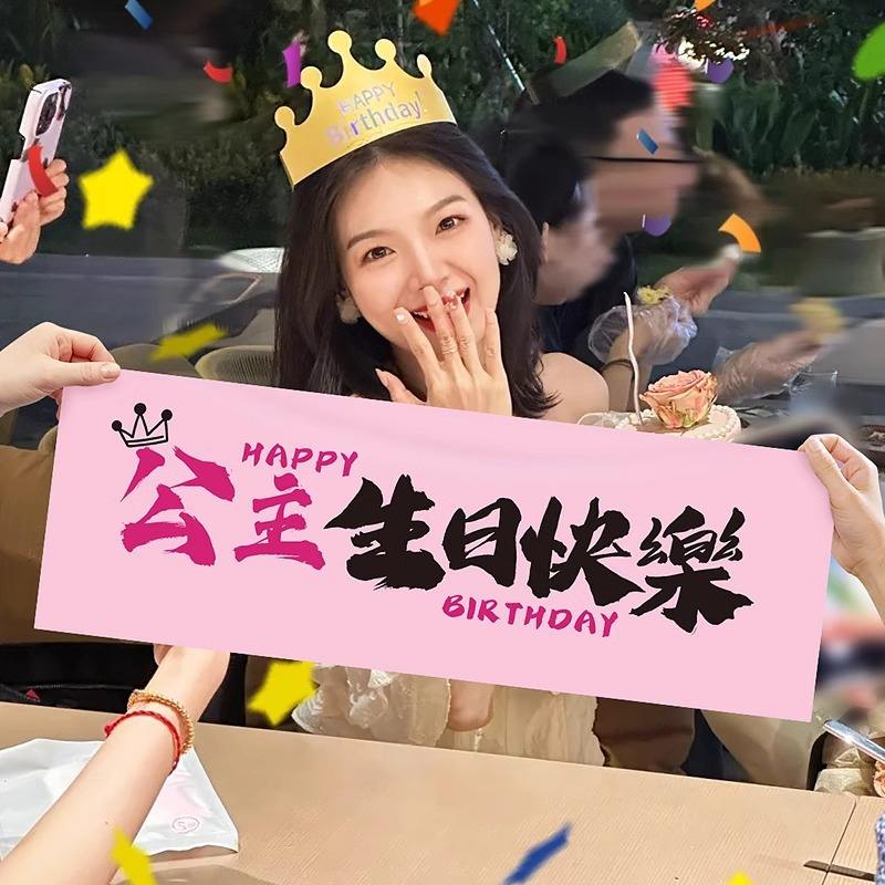 Bannière portative Joyeux Anniversaire style princesse, accessoire photo pour la mise en scène d'une fête d'anniversaire