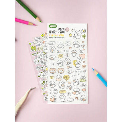 Lot de 4 autocollants de scrapbooking Happy Cat en papier imperméable à l'eau pour animaux de compagnie