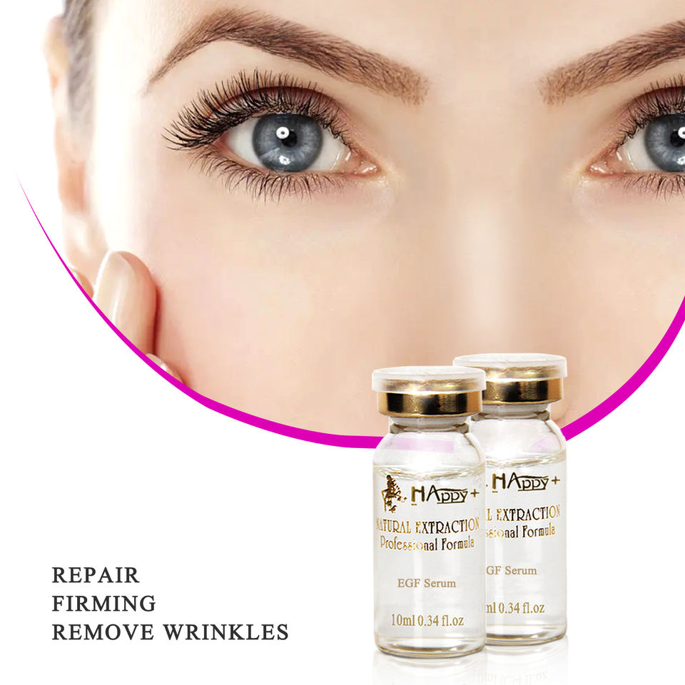 Sérum Happy+ EGF pour le visage, réparation de la peau, traitement anti-âge pour l'élimination des cicatrices d'acné et la réduction des rides, soin de la peau, essence éclaircissante