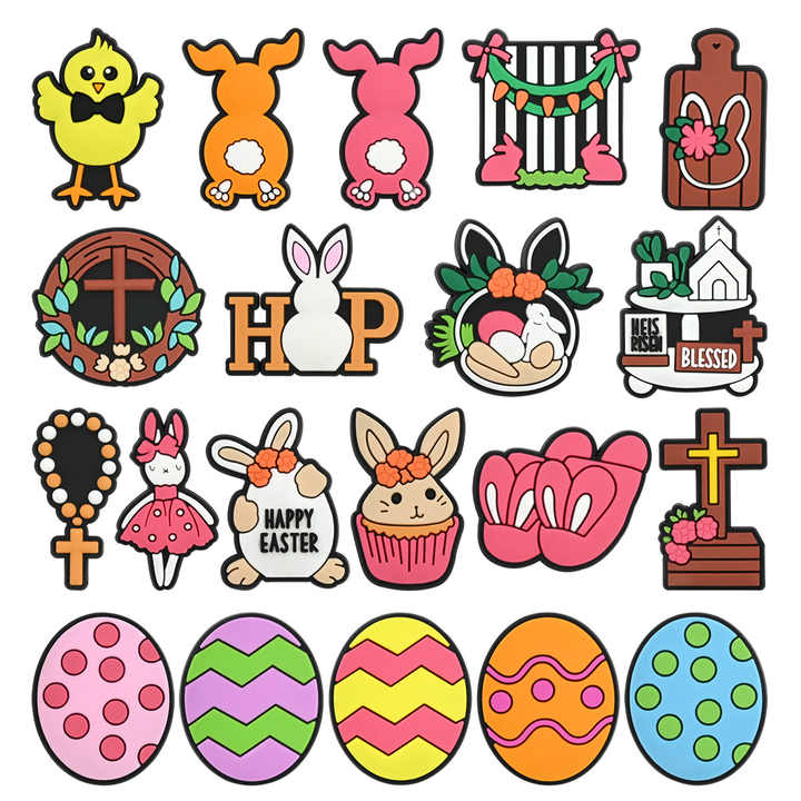 Charmes de chaussures lapin de Pâques, promotion cadeau, panier de Pâques, décorations de chaussures, œufs de Pâques, charmes de chaussures pour sabots