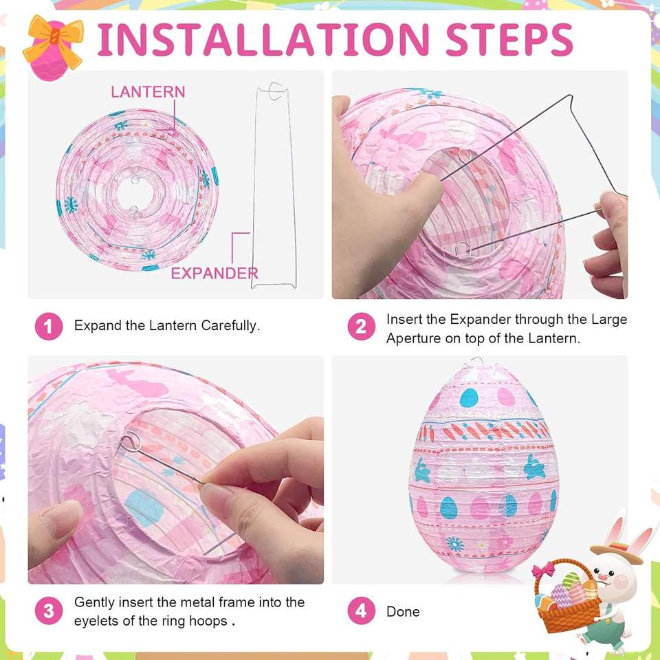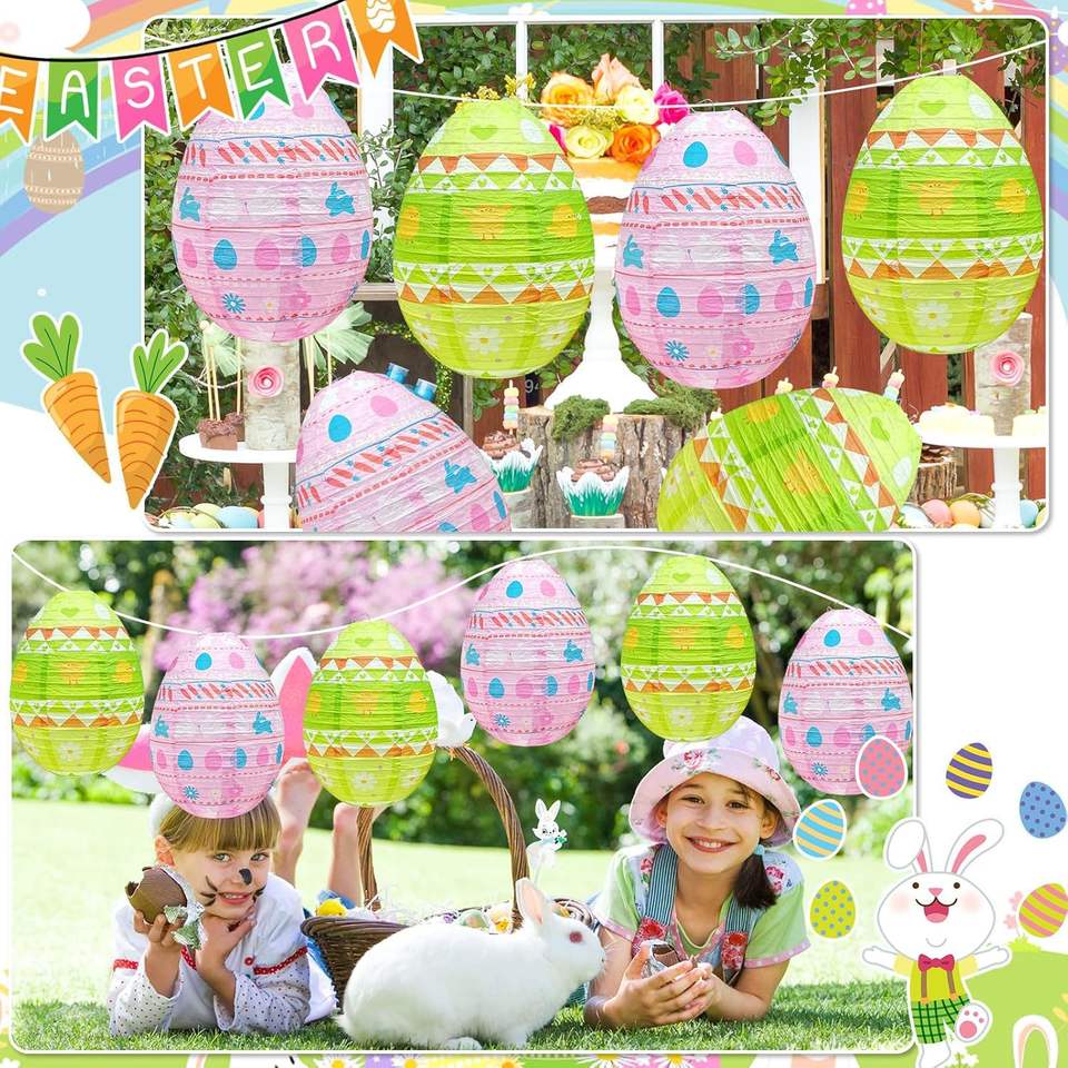 Lanternes en papier pour Pâques, décoration suspendue, lanternes en papier pour fête de Pâques, lanternes en papier en forme d'œuf, lanternes en papier pour le printemps et Pâques