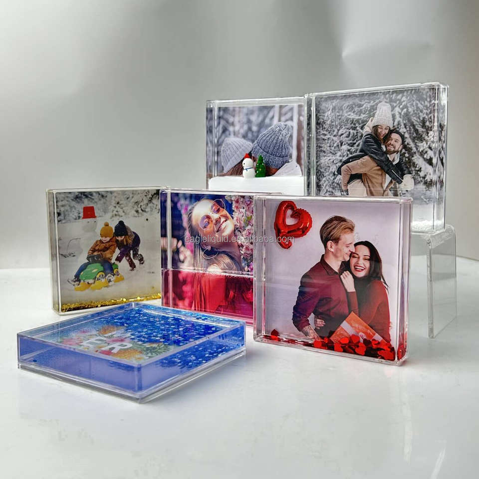 Cadeaux de fête des pères heureux Quicksand Glitter Photo Frame Clear Acrylic Aqua Block Rectangle Snow Dome Picture Frame