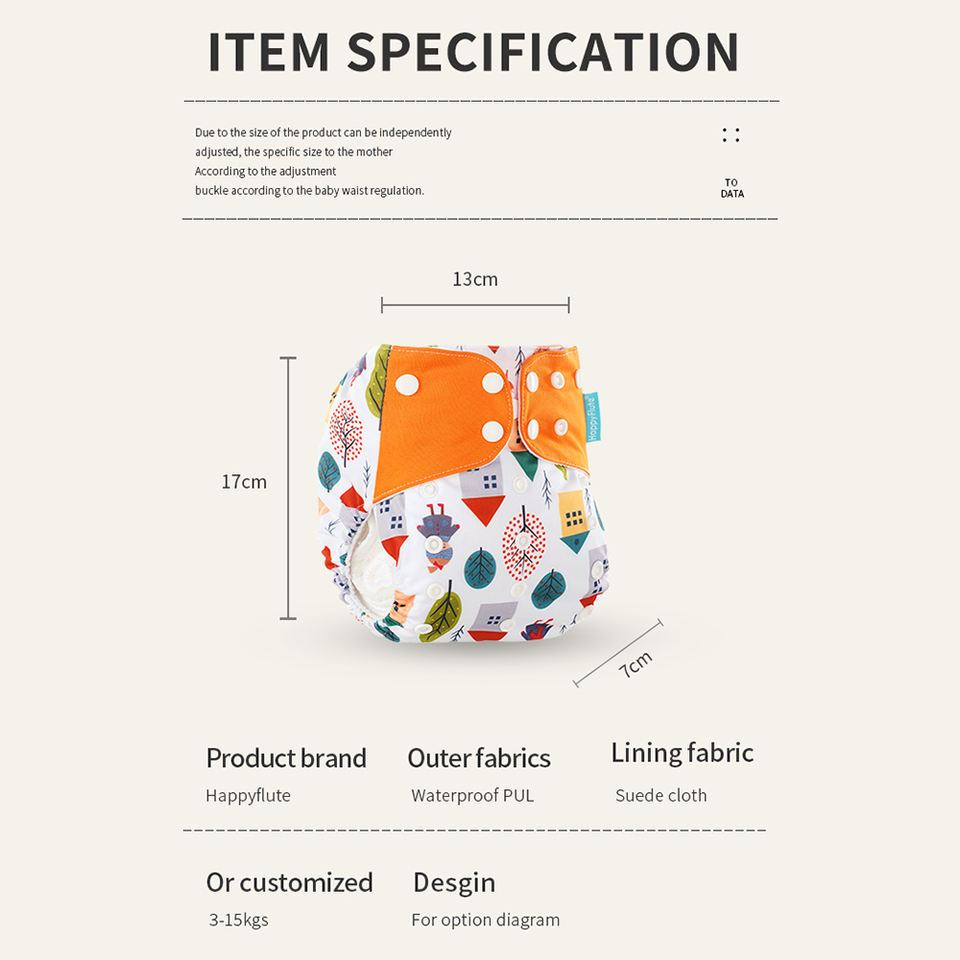 Happy Flute Lot de 4 couches lavables réglables pour bébé de 3 à 15 kg avec insertion