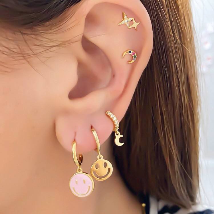 Heureux plaqué or cuivre Smiley visage boucles d'oreilles pour femmes Emoji gouttes pour empiler pour cadeaux d'amitié
