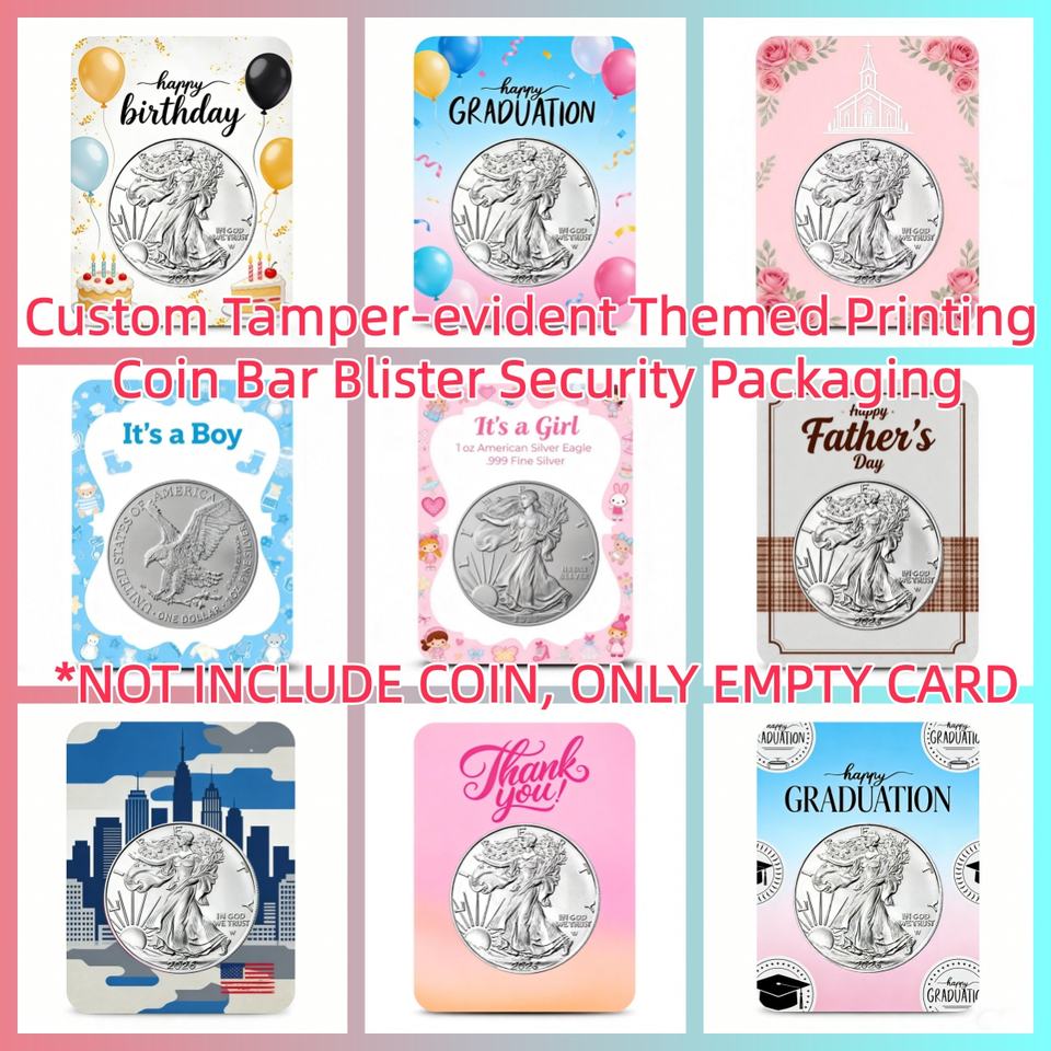 Lot de cartes pour pièces de monnaie d'argent de remise de diplôme, impression personnalisée, pièce de monnaie américaine en argent Eagle de 1 once, sous blister plastique scellé, emballage de sécurité vide