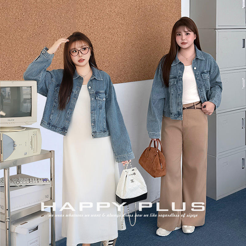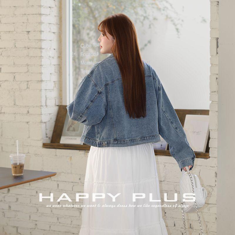 Veste en jean bleu clair à simple boutonnage Happy Hut, grande taille, manches longues, épaisseur moyenne, tissée, décontractée