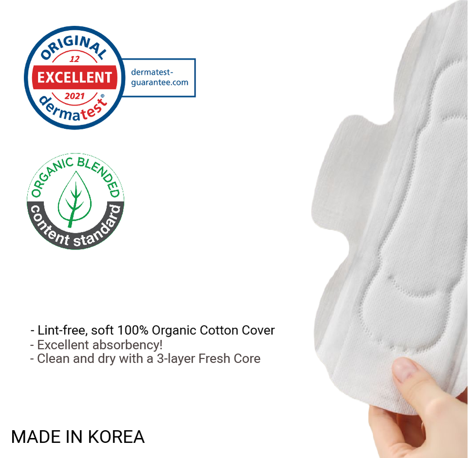 Happy Moonday Large Organic Cotton Sanitary Pads with High Absorbency and Ultra Soft Breathable Structure for Feminine Hygiene