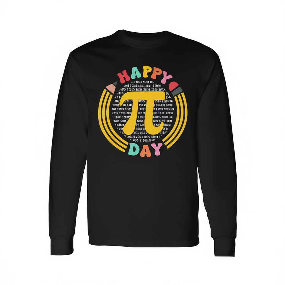 T-shirt à manches longues unisexe Happy Pi Day avec chiffres en spirale, col rond, impression numérique, vêtements promotionnels pour adultes