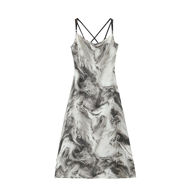 Robe dos nu Happy Plus Ink Wash coupe trapèze, col licou, taille naturelle, grande taille pour femme, origine Suzhou