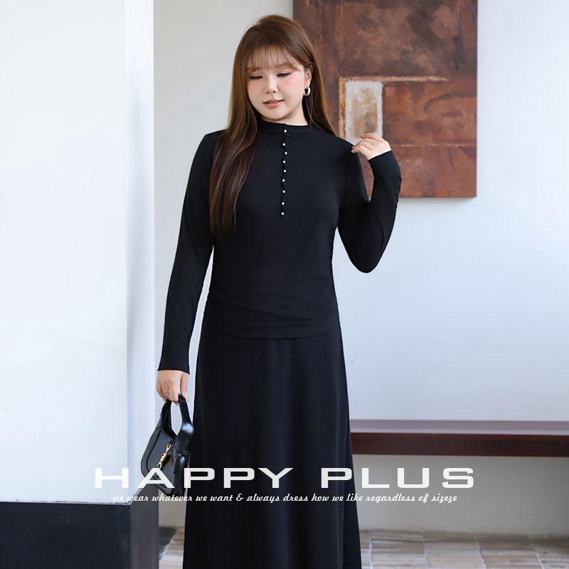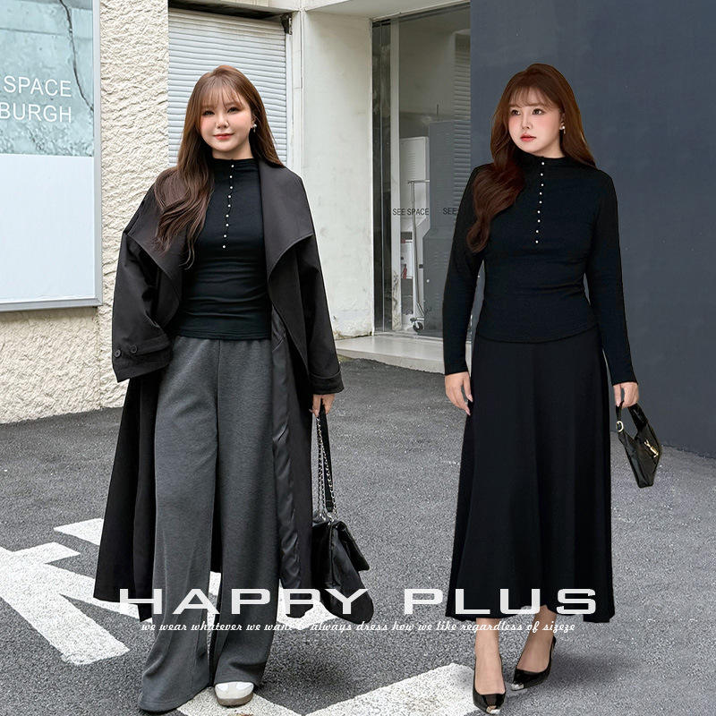 Pull col haut Happy Plus Modal N9419 pour femme grande taille, couleur noire classique, manches longues, pour l'automne et l'hiver