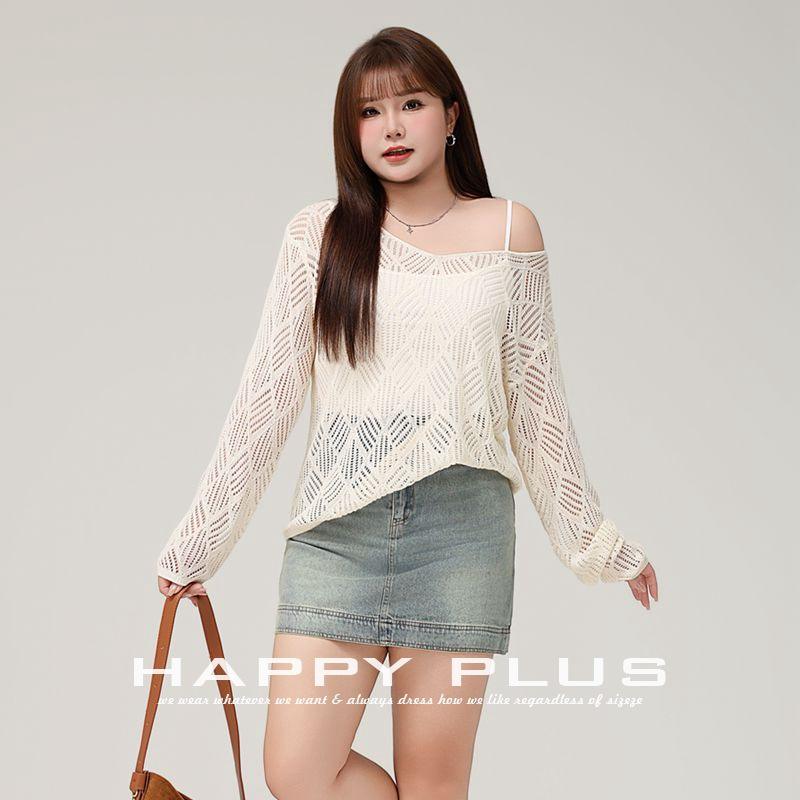 Happy Plus – débardeur tricoté à épaules dénudées pour femmes, couleur unie, grande taille, haute élasticité, fibre de viscose, N9166