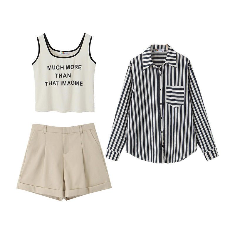 Happy Plus – chemise rayée de protection solaire pour femmes, grande taille, en coton, manches longues, Upf 50, ensemble trois pièces, N8891
