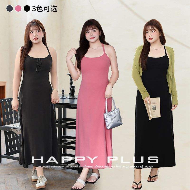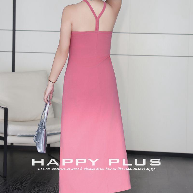 Robe midi dos nu pour femme Happy Plus, couleur unie, coton, grande taille N8953, rose mûre