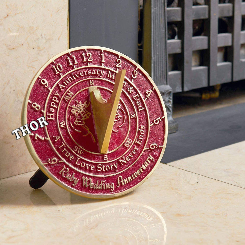 Heureux rubis mariage anniversaire cadeau maman papa jardin cadran solaire boussole cadran numérique affichage boîtier en laiton véritable histoire d'amour ne se termine jamais