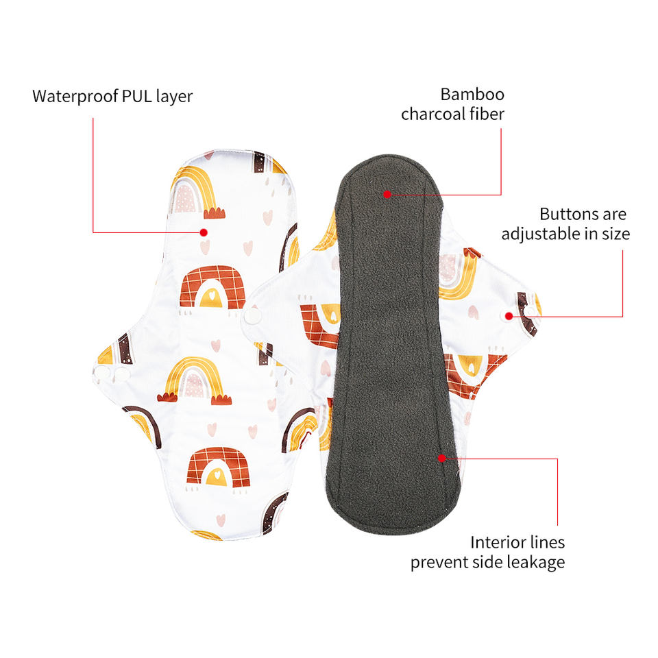 Serviettes hygiéniques en charbon de bambou, quatre tailles, avec boutons-pression
