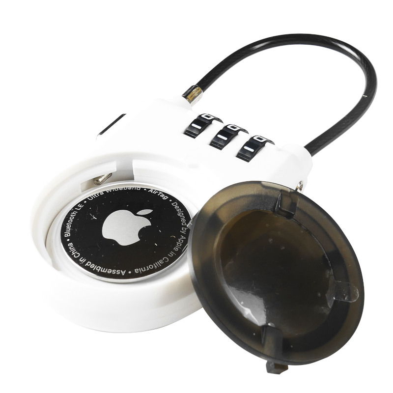 Support de sécurité léger en ABS rigide blanc avec cadenas à combinaison pour AirTag, pour vélo/moto