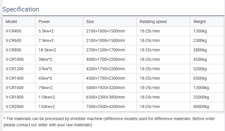 Application:Concassage des déchets câbles et fils, bois, bouteilles pour animaux de compagnie, pneus, etc.