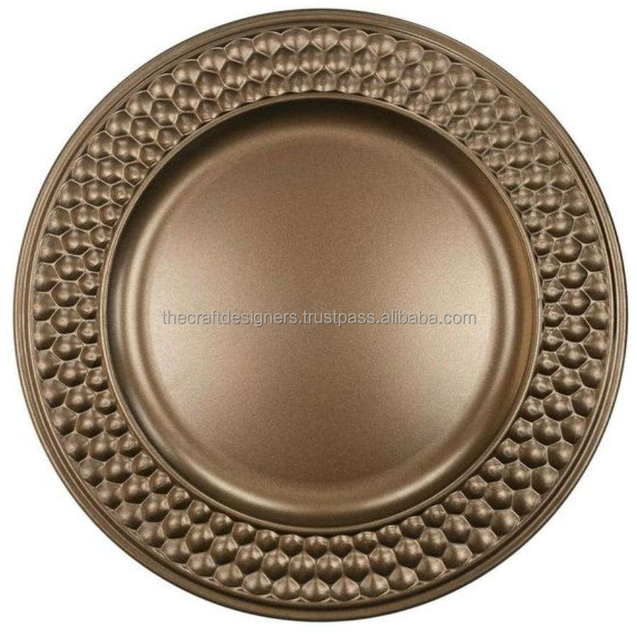 Assiette de charge ronde antique au design gaufré dur, assiette de service de qualité sûre pour les aliments Assiette de charge décorative pour hôtel et maison