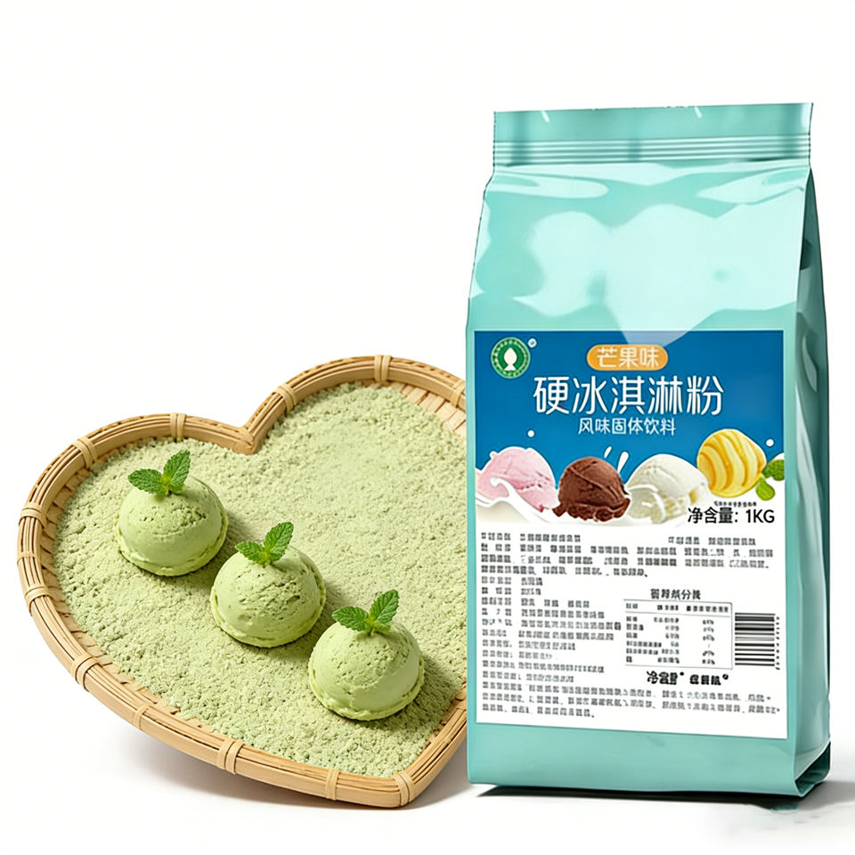 Poudre de crème glacée dure avec mélange de morceaux croustillants, substitut de crème non laitière en sachet, pour une crème glacée délicate importée