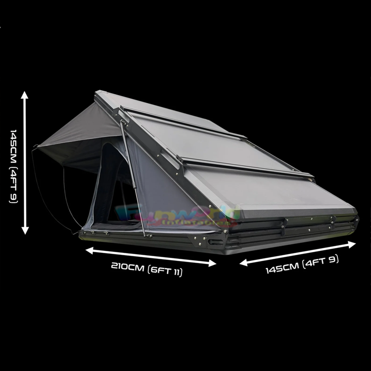 Tente de toit de voiture à coque dure Triangle Aluminium Noir Imperméable Anti-UV 50 Plus Tente de toit de voiture à coque dure avec barres de toit