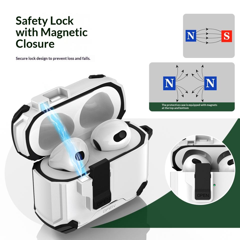 Coque de protection rigide et souple avec béquille et sangle pour AirPods 1 2 3 Pro 2 3 2025, anti-poussière, anti-jaunissement, robuste